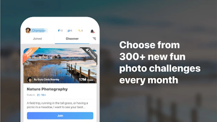 انغمس في عالم GuruShots مع مئات التحديات الجديدة التي تُطرح شهريًا ضمن مواضيع متنوعة وجذابة. سواء كنت تلتقط صورًا جديدة بكاميرتك أو تستخدم كنوزك القديمة، يمكنك إرسال أعمالك الفنية للمنافسة والحصول على تقييم فوري من مجتمعنا النشط. اجمع الأصوات، وارتق في المستويات لتصل إلى لقب "الغورو" الأسطوري، وعبّر عن موهبتك بطريقة أكثر إثارة. عزّز صورك بذكاء، وخطط لاستراتيجيتك لتحقيق أقصى قدر من العرض والفوز بالتحديات، متابعًا تقدمك وتصنيفك في الوقت الحقيقي.