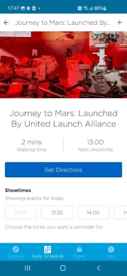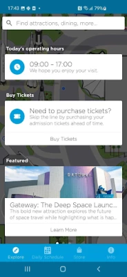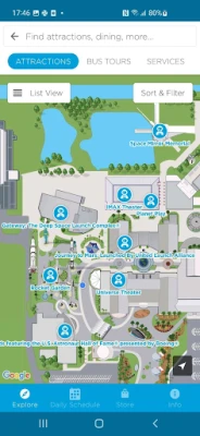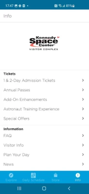 تُعد ميزة "خطط لرحلتك" المصممة ببراعة دليلك الشامل لرحلة سلسة وممتعة. يوفر لك Kennedy Space Center Visitor Complex خرائط تفصيلية، إجابات على الأسئلة المتكررة، وأوصافاً شاملة للعروض والجاذبيات التي لا تُفوّت، مما يضمن أن تكون مستعداً لكل لحظة. عزز تجربتك داخل المجمع بمعلومات وافية عن خدمات الضيوف، خيارات الطعام والتسوق المتنوعة، وابقَ على اطلاع دائم بفضل الإشعارات الفورية التي تشمل آخر المستجدات وحتى تنبيهات إطلاق الصواريخ التي قد تشهدها مباشرةً.