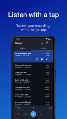 مُسجل الصوت السهل هو رفيقك المثالي لالتقاط كل لحظة صوتية مهمة بوضوح لا يضاهى. صُمم هذا التطبيق من Digipom ليقدم لك تجربة تسجيل سلسة وفعالة، سواء كنت في قاعة محاضرات واسعة أو في قلب اجتماع عمل أو حتى تداعب أوتار آلتك الموسيقية. يوفر لك مرونة غير مسبوقة في التعامل مع الصوت، مع الحفاظ على جودة استثنائية تمكّنك من استعادة التفاصيل الدقيقة في أي وقت ومن أي مكان.