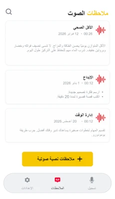 "مسجل الصوت" يمثل رفيقك الرقمي الأمثل لالتقاط وحفظ لحظاتك الثمينة، سواء كانت همسة عابرة أو محاضرة أكاديمية دقيقة. صُمم هذا التطبيق ليخدم كل من يسعى للتميز، من طلاب الجامعات الذين يدونون الملاحظات إلى المحترفين الذين يسجلون اجتماعاتهم، وصولاً إلى الموسيقيين الذين يلتقطون الإلهام الفوري. مع "مسجل الصوت" وميزة "محرر المذكرات الصوتية"، لن تفوتك أي فكرة؛ حيث يمكنك تحويل الكلمات المنطوقة بسلاسة إلى محتوى نصي، ليصبح كل صوت مصدرًا للمعرفة والتوثيق.