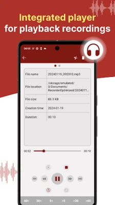 مع مسجل الصوت لدينا - تطبيق التسجيل السهل، احصل على تسجيلات صوتية فائقة الجودة بسهولة تامة. يمنحك التطبيق حرية التسجيل بلا حدود زمنية، فالحد الوحيد هو مساحة ذاكرة جهازك. تجربة مثالية لكل احتياجاتك الصوتية.
