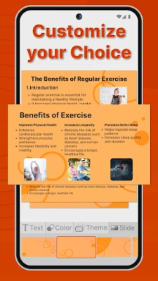 صُمم **بريزنتيشن ايه آي: سلايد شو ميكر** ليكون شريكك في النجاح، ليُمكنك من إنجاز شرائح احترافية حتى بدون خبرة تصميم سابقة. يدعك الذكاء الاصطناعي يختار بين السمات والتخطيطات المعدة مسبقًا ويُنسّق المحتوى والألوان، مع ترك لمستك الشخصية دائمًا ممكنة. للطلاب، يعني هذا مشاريع واضحة وإبداعية. وللمحترفين، يعني تقارير عمل وعروض تقديمية تُحدث فرقًا حقيقيًا في وقت قياسي، سواء عند عرضها على العملاء أو التعاون مع الشركاء. إنه يضمن عروضًا ذات مظهر احترافي ودقيق، تعكس جودة أفكارك.