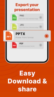 يُعزز **بريزنتيشن ايه آي: سلايد شو ميكر** من كفاءتك ويُطلق العنان لإبداعك، فهو مُصمم لتحسين سير العمل لديك. سواء كنت ترغب في عرض مباشر، مشاركة نسخة رقمية، أو حفظها كملف PPT، يوفر لك التطبيق مرونة لا حدود لها. لا تدع أي فكرة تُهمل؛ حوّل مفاهيمك إلى عروض تقديمية مؤثرة ووفر وقتك الثمين في تنسيق الشرائح. قوة العرض التقديمي المثالي أصبحت على بُعد نقرة واحدة.