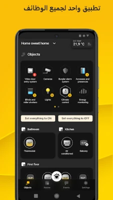 استمتع براحة البال المطلقة التي يوفرها VIEW APP، حيث يصبح الرد على مكالمات الإنتركم المرئي، أو ضبط درجة حرارة منزلك، أو تفعيل نظام الحماية، إجراءات بسيطة ومباشرة من واجهة واحدة سهلة الاستخدام. بفضل الأمان الذي توفره سحابة Vimar للتحكم عن بُعد، يمكنك إدارة منزلك بثقة تامة سواء كنت داخله أو خارجه. الواجهة المصممة بعناية، والتي تستلهم لغة التصميم البديهية لأنظمة التشغيل الرائدة وتدعم إيماءات الجوّال المألوفة، تجعل تجربة أتمتة منزلك من Vimar سهلة وممتعة للغاية. VIEW APP هو بوابتك لحياة ذكية تتسم بالراحة، الأمان، والكفاءة التي تستحقها.